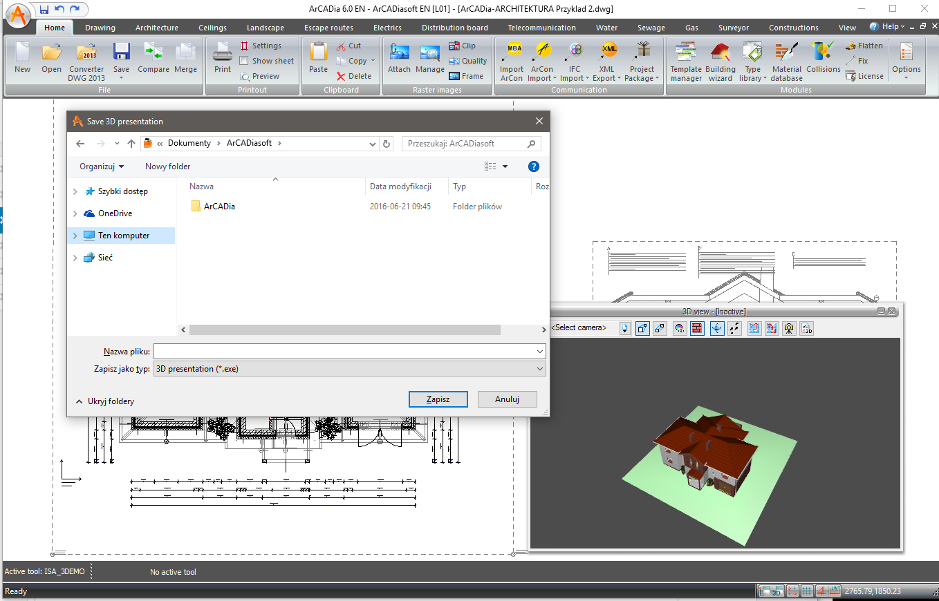 - ArCADia-3D MAKER, ktorý má možnosť uložiť 3D projekt.