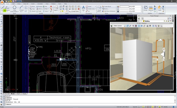 - Vytváranie výkresov vnútorných vykurovacích inštalácií, vychádzajúcich zo zdroja tepla, cez merač tepla a potrubia a končiacich potrebným vybavením.